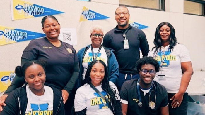 During Nurses' Week this year, a group of enthusiastic nursing students from the Department of Nursing visited Huntsville Hospital to celebrate the vital role of nurses in healthcare. Chaperoned by Dr. Karen Lynch-Frater (Chair) and Dr. Erhyvwukorotu Kollie, the students set up an engaging information booth. The booth was laden with various Oakwood items, including caps, t-shirts, pens, bags, brochures, program details, and personalized insights about the university's nursing program. The students proudly represented the department, interacting with hospital staff and visitors, fostering connections, and showcasing the university's commitment to cultivating the next generation of compassionate, skilled nurses.